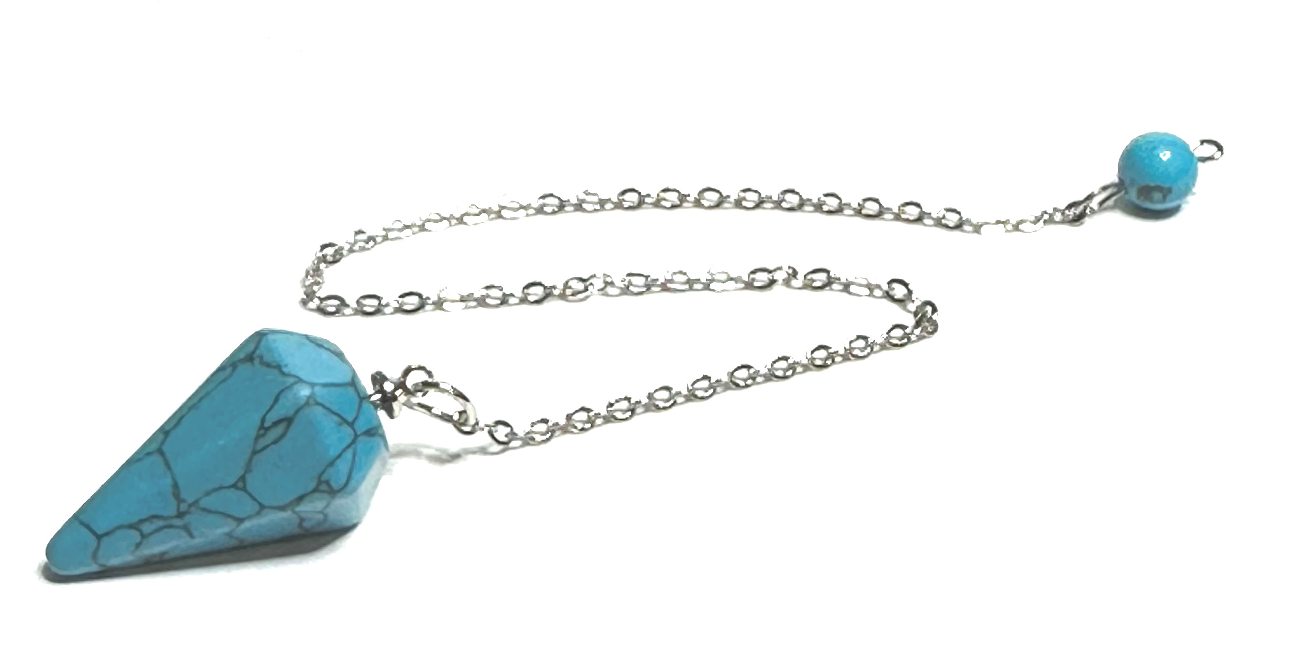 Tyrkenit niebieski wahadełko 2,5 cm + 18 cm łańcuszek z koralikami, kamień młodych ludzi, szuka celu życiowego