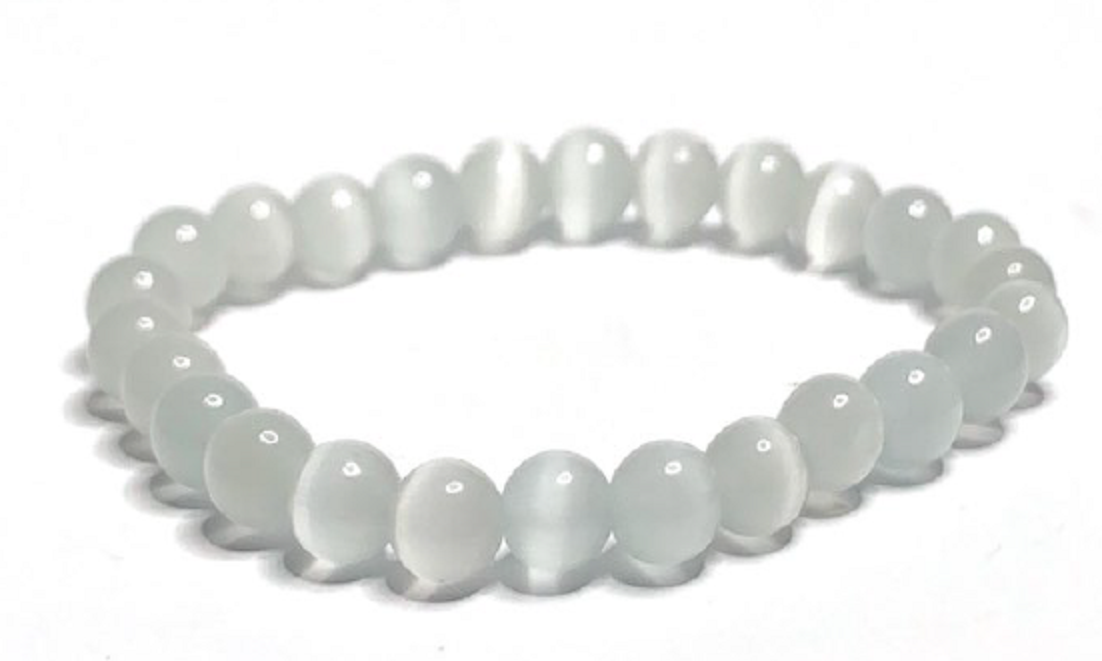 Ulexit / Kočičí oko náramek elastický přírodní kámen, kulička 8 mm / 16 - 17 cm