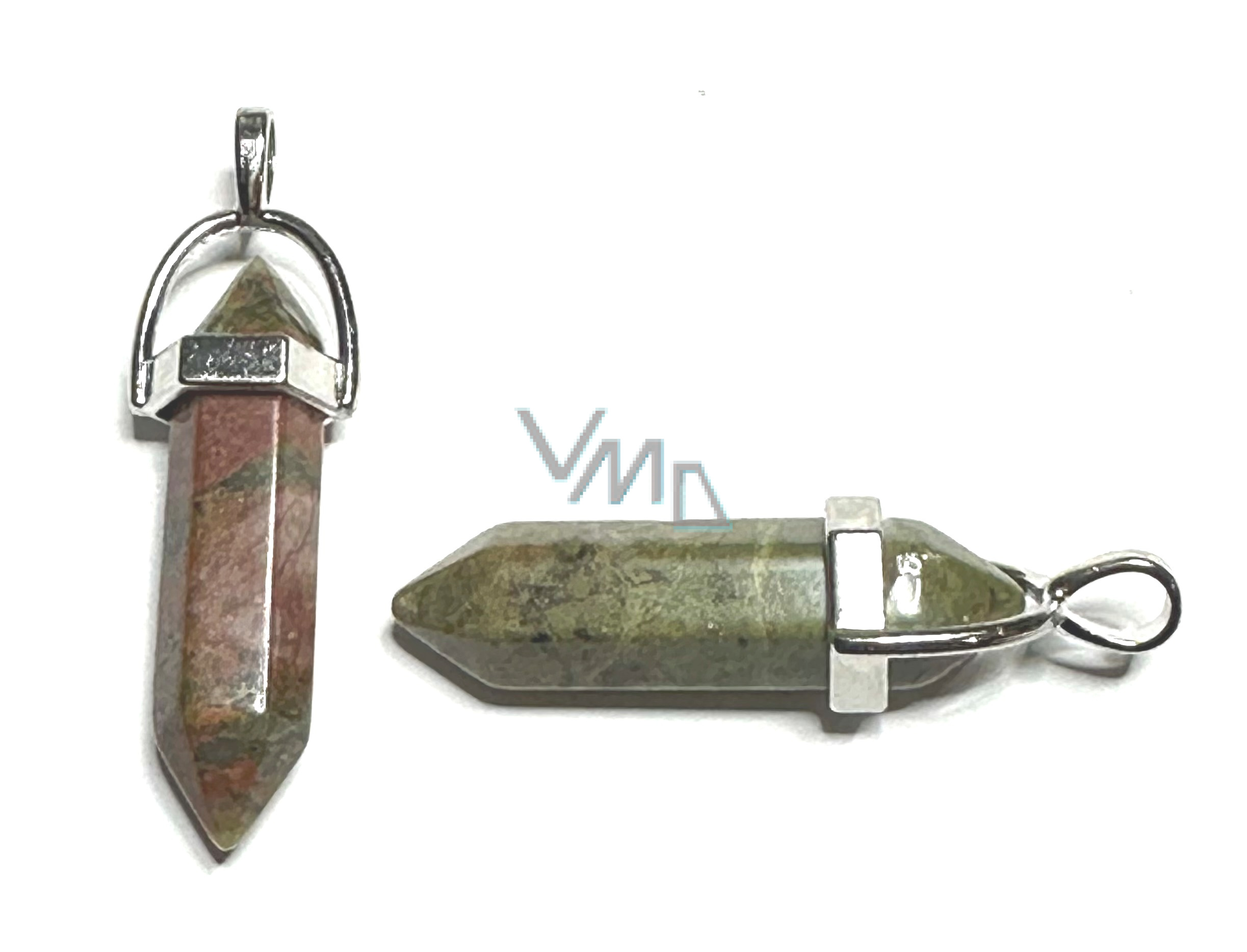 Wahadło Unakit sześciokątny pryzmat naturalny kamień 41 x 13 mm, kamień osobistego wzrostu i wizji