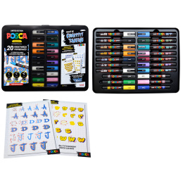 Posca Graffiti Univerzální sada akrylátových popisovačů mix barev a hrotů 20 kusů v kovovém boxu