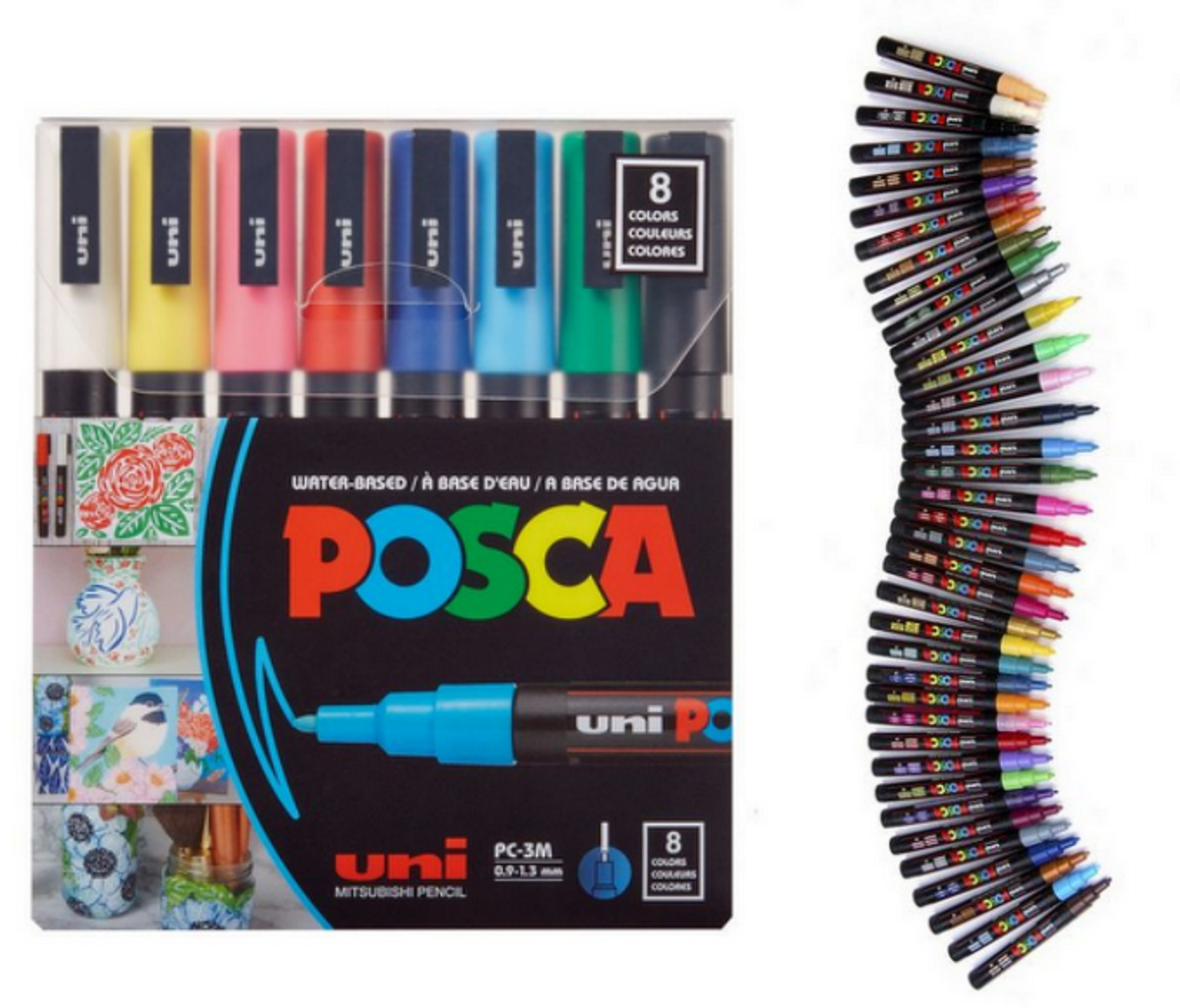 Popisovač na vodní bázi s unikátními vlastnostmi. Má výbornou Krycí schopnost. Je permanentní a nezapáchá. Lze ho využít prakticky na jakýkoliv povrch, například na textil, papír, kov, keramiku, dřevo, porcelán, kámen nebo sklo. Posca pen s tenkým hrotem je vhodná pro umělce a designéry, ale i pro začátečníky. Před použitím je potřeba barvu dobře promíchat pomocí kuličky uvnitř tuby.
