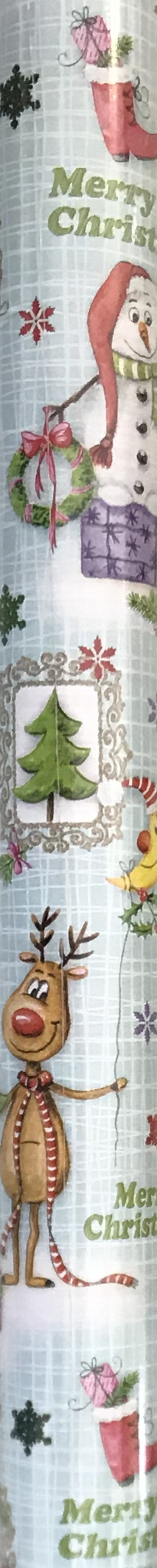 Präsenta Dárkový balicí papír 70 cm x 5 m Vánoční světle modrý se sobem, sněhulákem, Merry Christmas