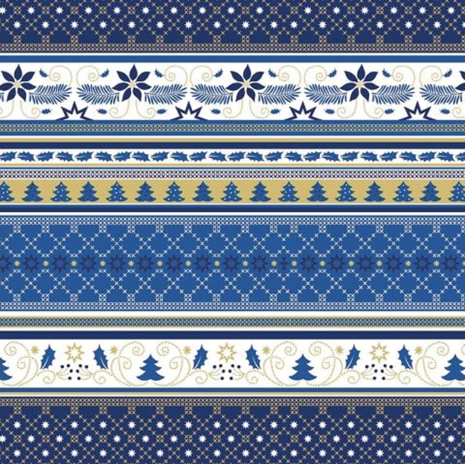 Präsenta Dárkový balící papír 70 x 200 cm Vánoční modré, bílé, zlaté pásky, vánoční vzory