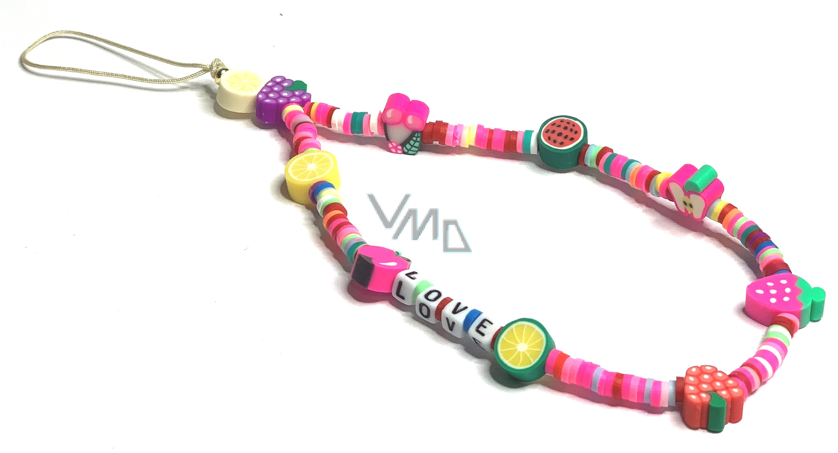 Přívěsek na mobilní telefon proti ztrátě, korálky, ovoce, love, obvod 26,5 cm