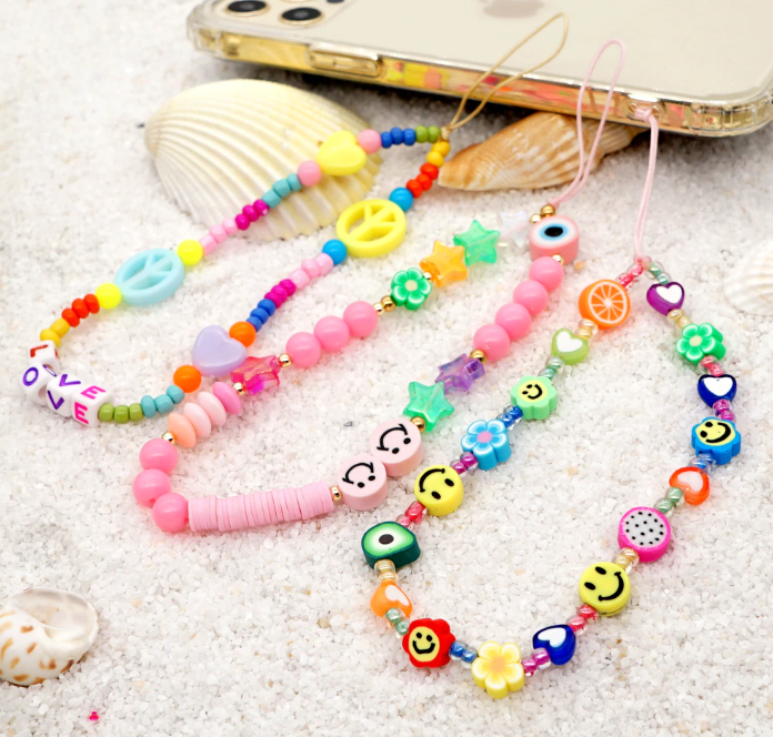 Přívěsek na mobilní telefon proti ztrátě s korálky, ovocem, love, obvod 26,5 cm