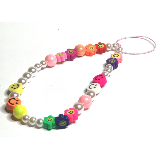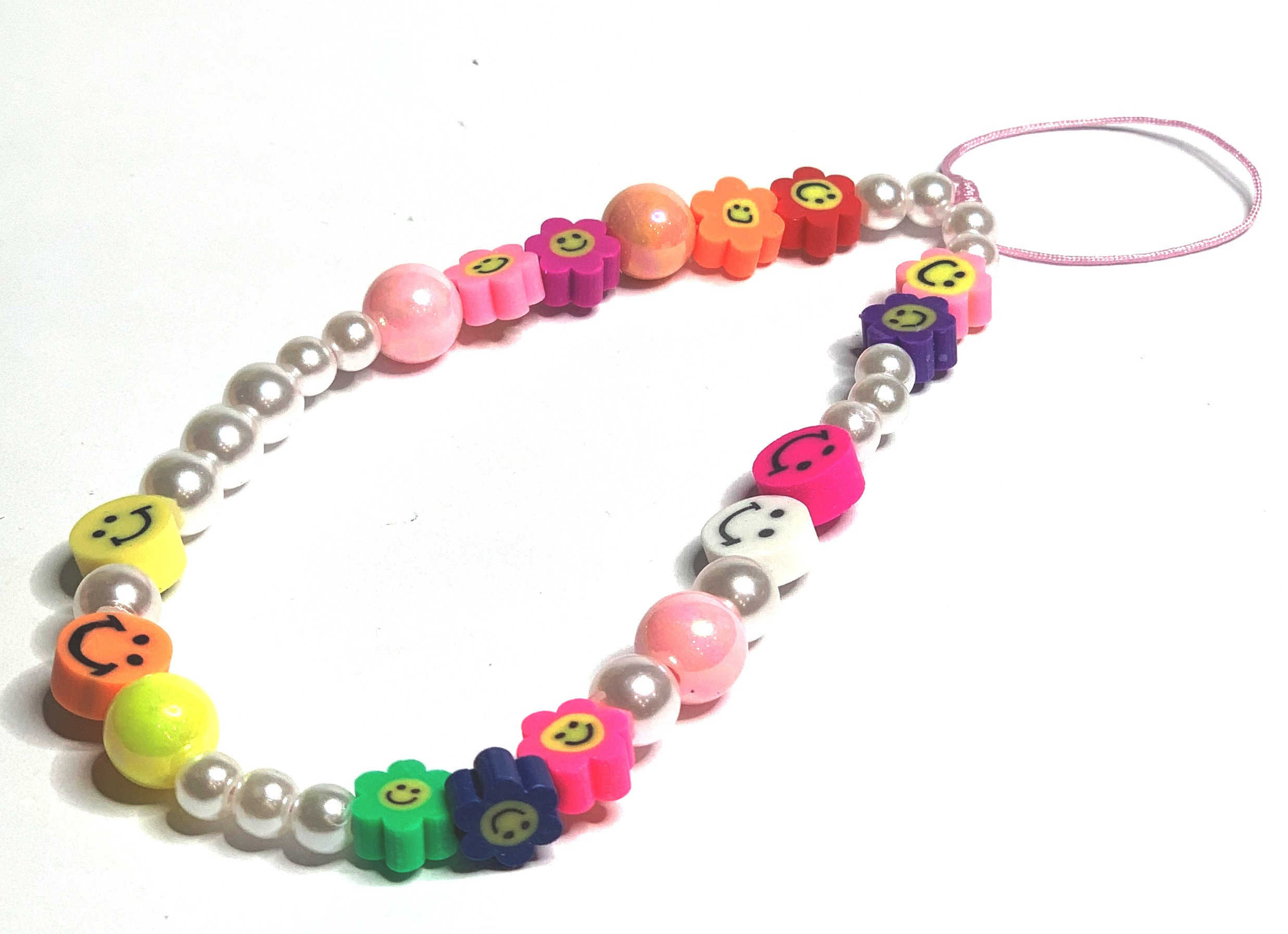 Přívěsek na mobilní telefon proti ztrátě s korálky, smajlík, perličky, obvod 26,5 cm