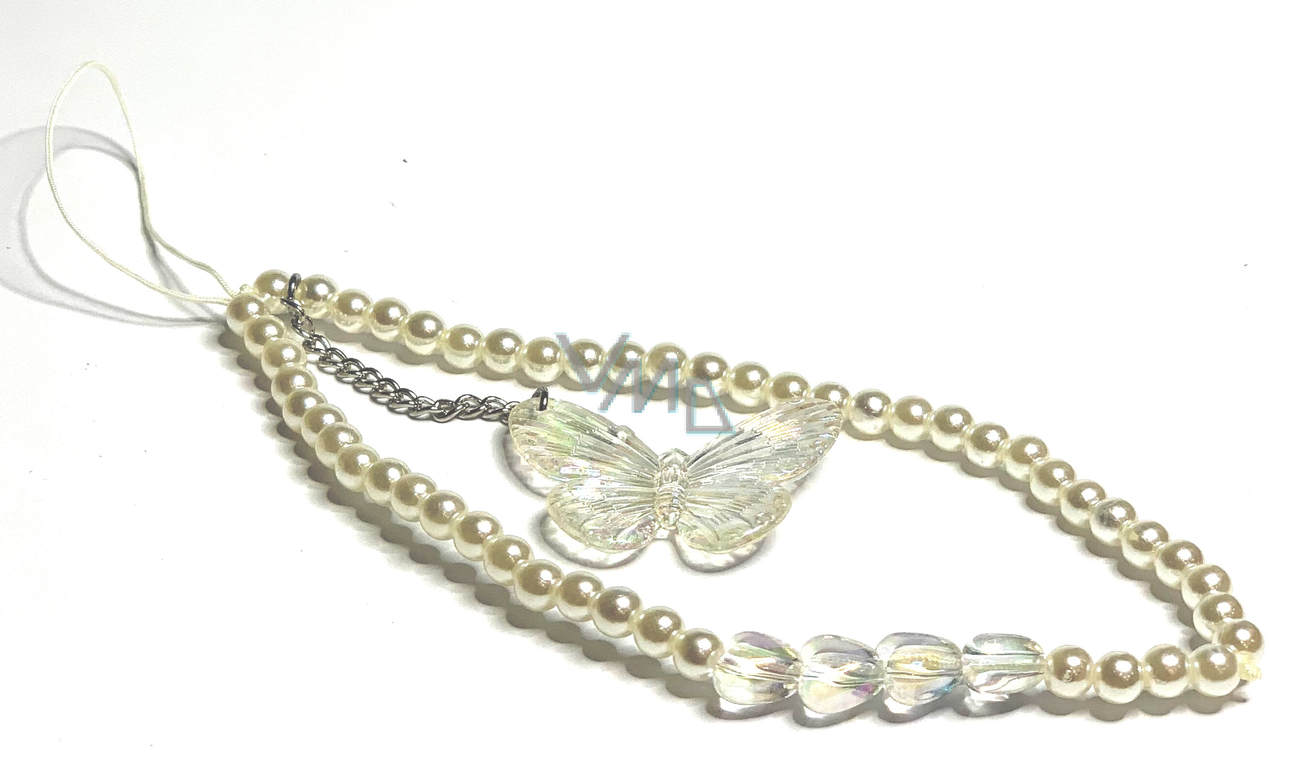 Přívěsek na mobilní telefon proti ztrátě s perličkami, motýlkem, obvod 30 cm