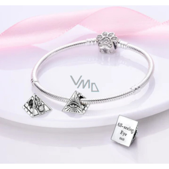 Charm Sterlingové stříbro 925 Egypt Vševidoucí oko pyramidy, korálek na náramek cestování