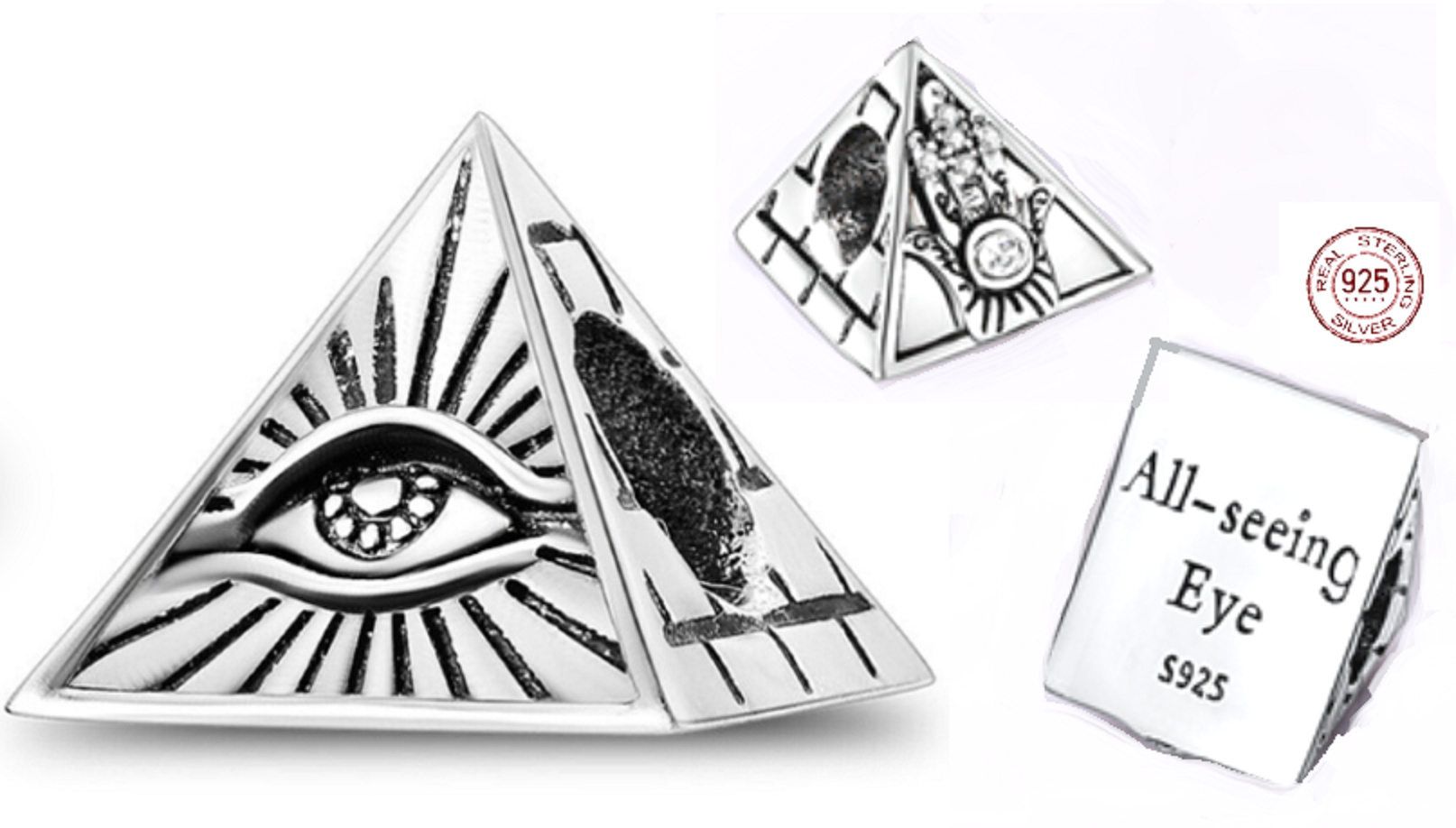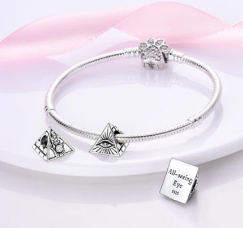Charm Sterlingové stříbro 925 Egypt Vševidoucí oko pyramidy, korálek na náramek cestování