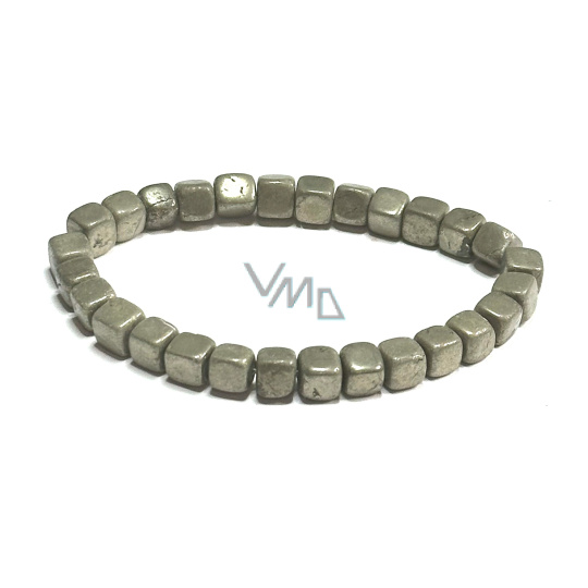 Pyrit náramek elastický přírodní kámen, kostka 6 - 7 mm / 16 - 17 cm, mistr sebevědomí a hojnosti