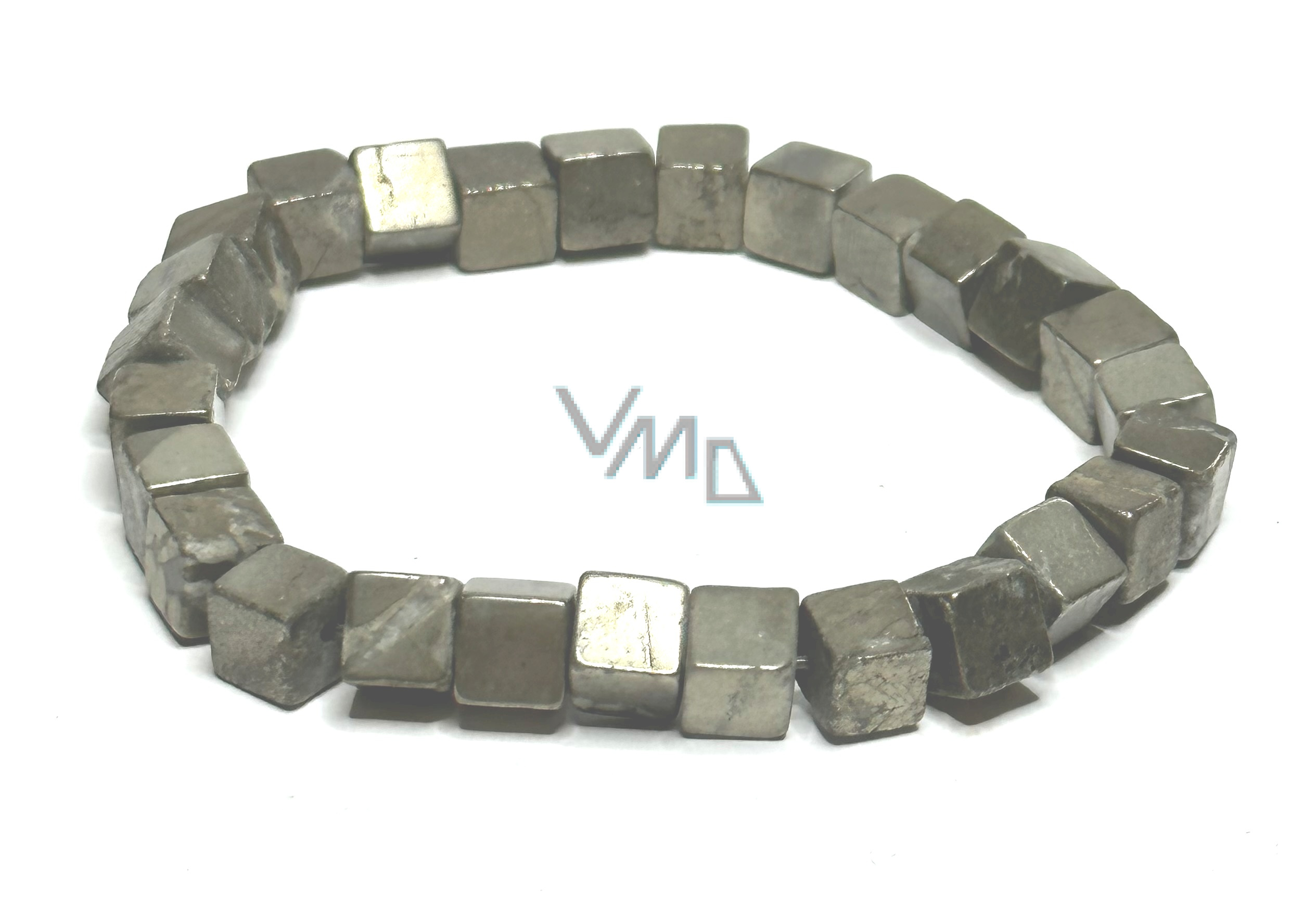 Pyrit náramek elastický z přírodní, kostka 6 mm / 16 - 17 cm, mistr sebevědomí a hojnosti