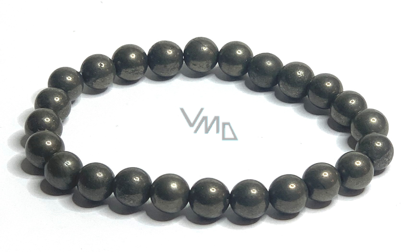 Pyrit náramek elastický přírodní kámen, kulička 8 mm / 16 - 17 cm, mistr sebevědomí a hojnosti