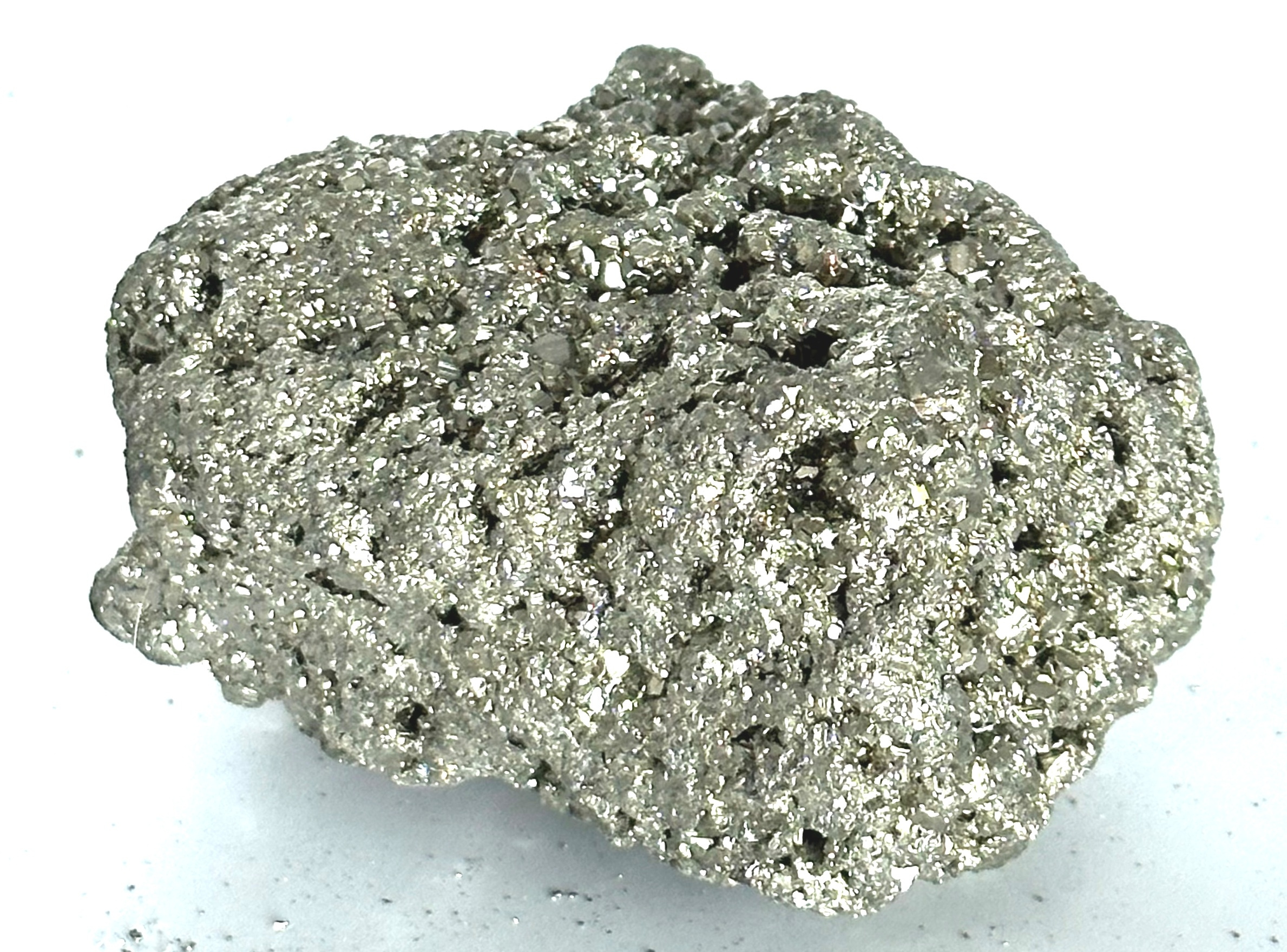 Velmi estetický minerál s pravidelnými krychlovými krystaly, které mohou dorůst až do několika decimetrů. Pyrit je mezi sběrateli oblíbený pro svůj mosazně žlutý nádech a vysoký kovový lesk. Někdy se mu říká "bláznovo zlato" protože byl v minulosti často zaměňován za tento drahý kov. Lokality jeho výskytu se dají nalézt po celém světě, ale ty nejkrásnější jsou se nacházejí v Peru - stejný původ mají i naše kameny. Z hlediska chemického složení se jedná o disulfid Železa.