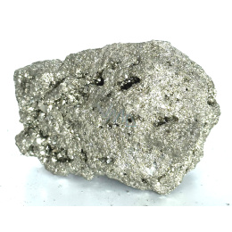 Velmi estetický minerál s pravidelnými krychlovými krystaly, které mohou dorůst až do několika decimetrů. Pyrit je mezi sběrateli oblíbený pro svůj mosazně žlutý nádech a vysoký kovový lesk. Někdy se mu říká "bláznovo zlato" protože byl v minulosti často zaměňován za tento drahý kov. Lokality jeho výskytu se dají nalézt po celém světě, ale ty nejkrásnější jsou se nacházejí v Peru - stejný původ mají i naše kameny. Z hlediska chemického složení se jedná o disulfid Železa.