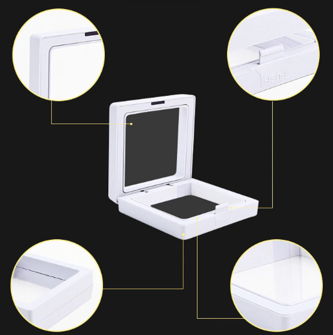 Rámeček, do kterého lze vložit jakýkoliv předmět, jenž se do rámečku vejde. Díky průhledné paměťové folii lze rámeček použít opakovaně. Po uzavření rámečku folie z obou stran obalí a uchytí vystavovaný předmět, který pak jeví dojem, že v rámečku visí (plave) ve vzduchu. Můžete si vystavit oblíbenou figurku, mušli jako vzpomínku z dovolené, vložit jen fotografii, vstupenku na koncert, který byl nejlepším zážitkem v životě a mnoho dalšího, co vás napadne. Jedná se o super způsob, jak uložit i vystavit i šperky, obroučky.