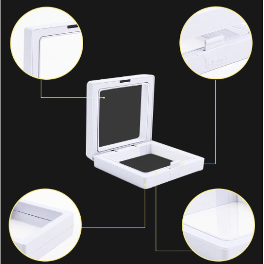 Rámeček, do kterého lze vložit jakýkoliv předmět, jenž se do rámečku vejde. Díky průhledné paměťové folii lze rámeček použít opakovaně. Po uzavření rámečku folie z obou stran obalí a uchytí vystavovaný předmět, který pak jeví dojem, že v rámečku visí (plave) ve vzduchu. Můžete si vystavit oblíbenou figurku, mušli jako vzpomínku z dovolené, vložit jen fotografii, vstupenku na koncert, který byl nejlepším zážitkem v životě a mnoho dalšího, co vás napadne. Jedná se o super způsob, jak uložit i vystavit i šperky, obroučky.