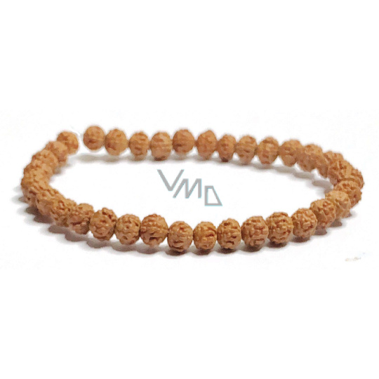 Rudraksha náramek elastický z přírodního semene, kulička 6 mm / 16 - 17 cm