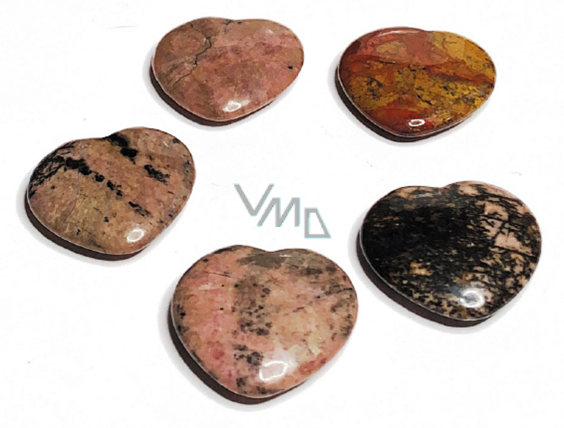 Rodonit Hmatka, léčivý drahokam ve tvaru srdce přírodní kámen 3 cm 1 kus, kámen odpuštění
