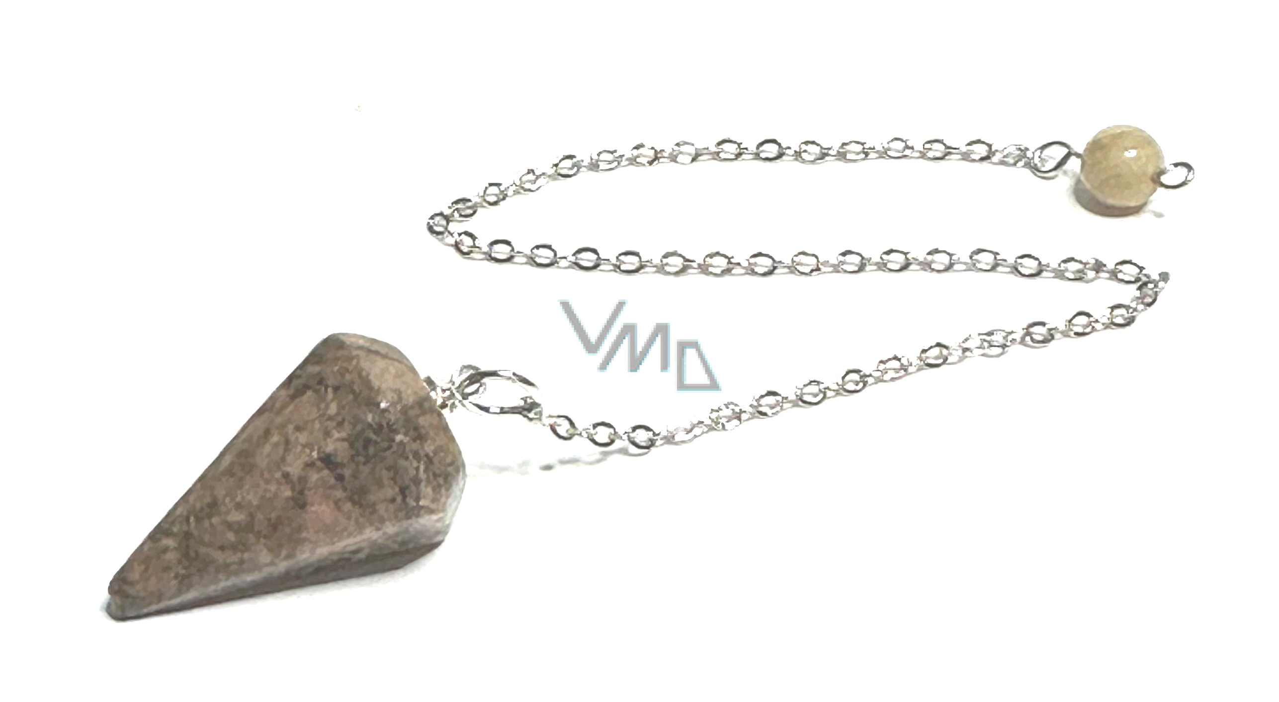 Rodonit kyvadlo přírodní kámen 2,5 cm + 18 cm řetízek s korálkou, kámen odpuštění