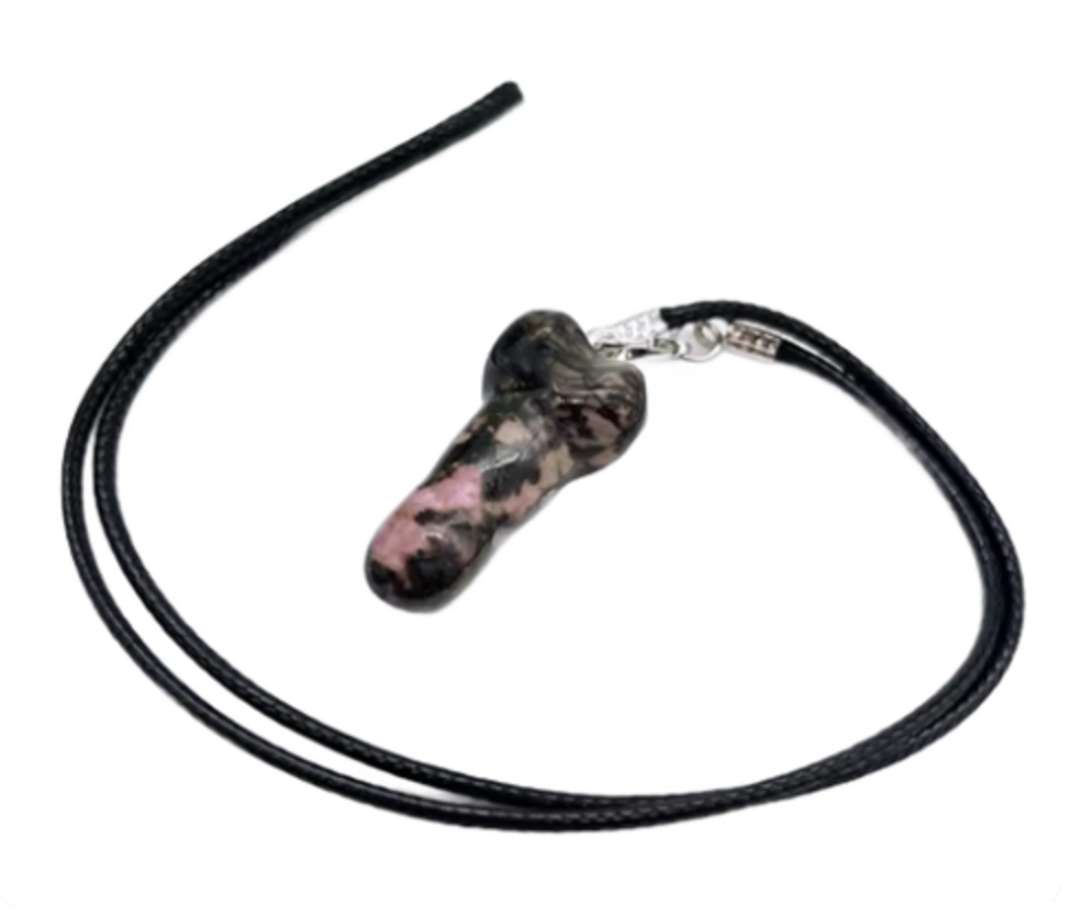 Rodonit Penis amulet pro plodnost, přívěsek přírodní kámen ručně broušený 3 cm, velký léčitel srdcí