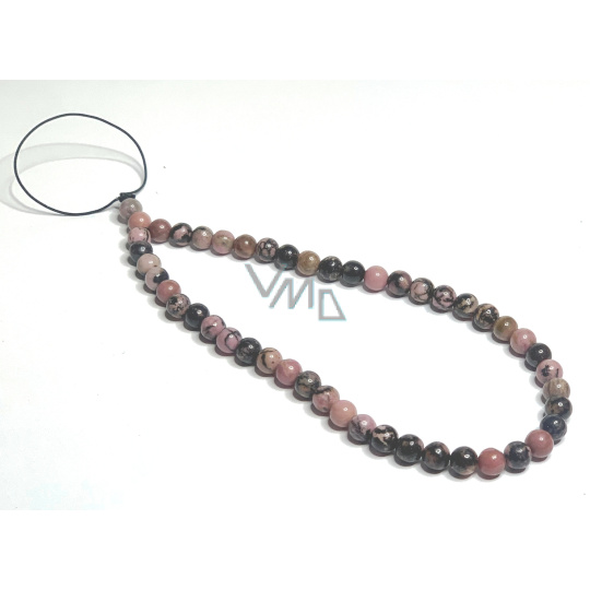 Rodonit přívěsek na mobilní telefon proti ztrátě, přírodní kámen korálek 6 mm / 28,5 cm, kámen odpuštění