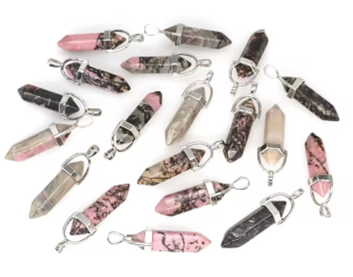 Rodonit kyvadlo šestihran přívěsek přírodní kámen 41 x 13 mm, kámen odpuštění