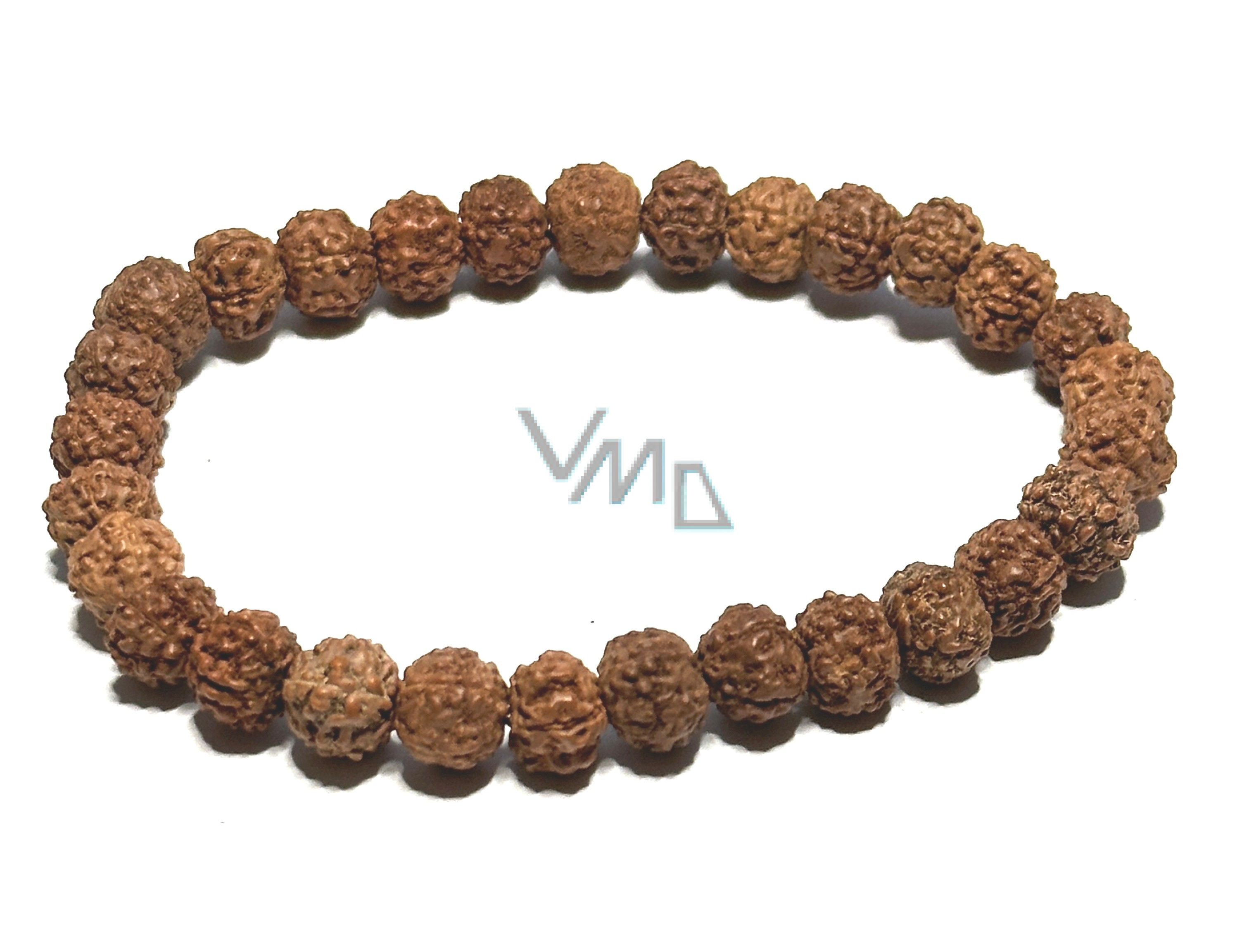 Rudraksha náramek elastický přírodní kámen 7 mm / 16 - 17 cm