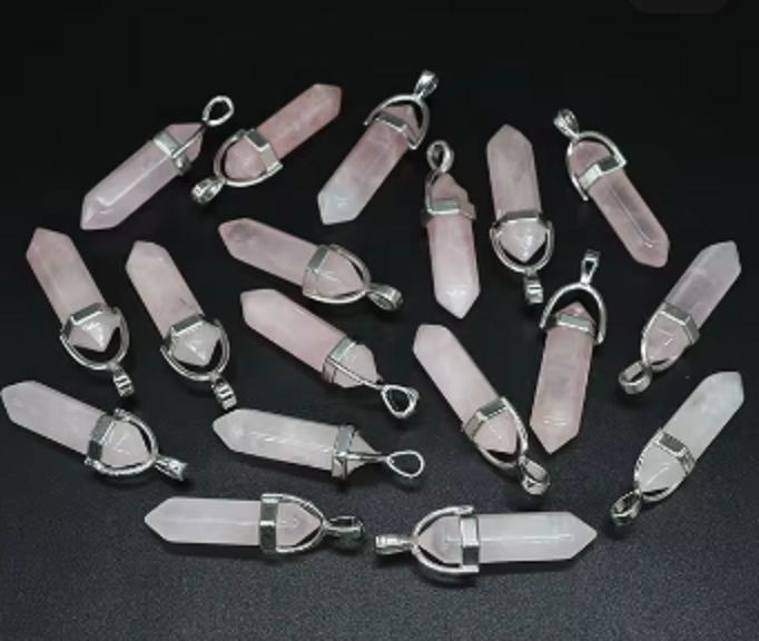 Růženin kyvadlo šestihran přívěsek přírodní kámen 41 x 13 mm, kámen lásky