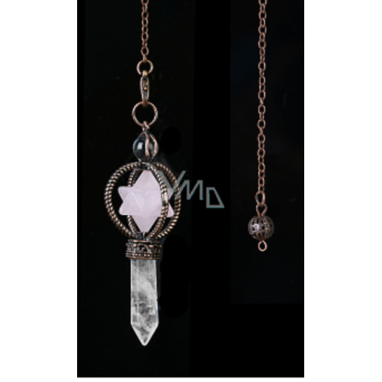 Růženin Merkaba kyvadlo + čirý křemen + bronz, přívěsek z přírodního kamene 7,7 cm, řetízek cca 26,5 cm