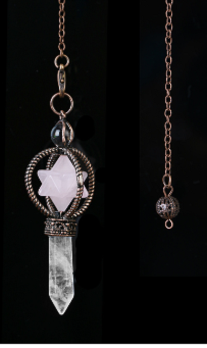 Růženin Merkaba kyvadlo + čirý křemen + bronz, přívěsek z přírodního kamene 7,7 cm, řetízek cca 26,5 cm