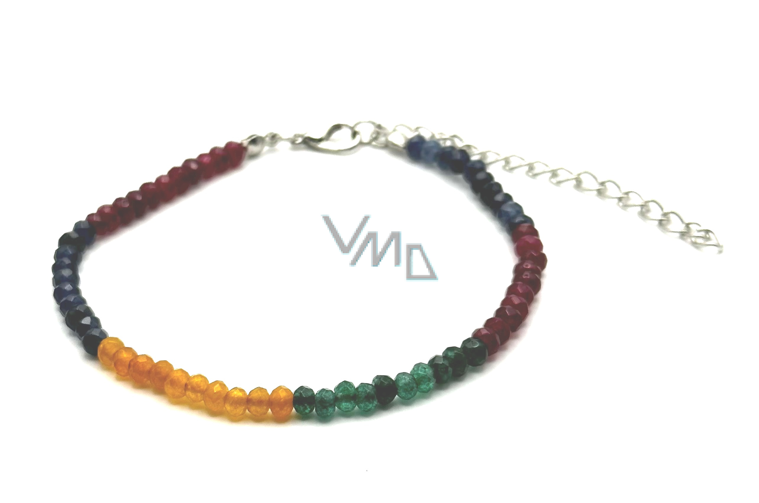 Safír, smaragd, achát, rubín fazet náramek přírodní kámen na zapínání 21 - 25 cm, kulička 4 mm
