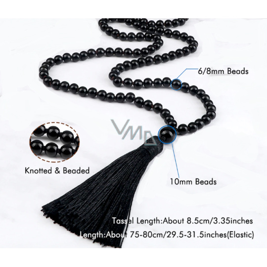 108 Mala Obsidian náhrdelník, meditační šperk, přírodní kámen vázaný, elastický, korálek 6 mm, kámen záchrany