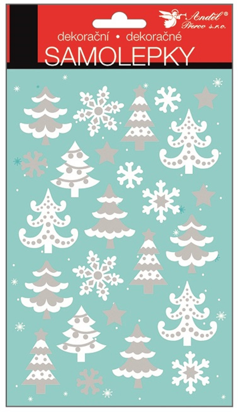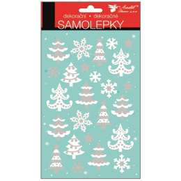 Samolepky bílé se stříbrnými glitry stromy 25 x 14 cm