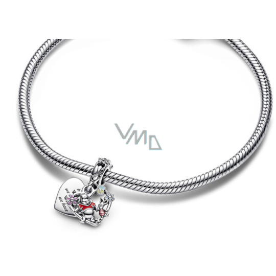 Charm Sterlingové stříbro 925 Disney Medvídek Pú a Prasátko - Není to o tom co máme, ale koho máme, 2v1 přívěsek srdce na náramek, film