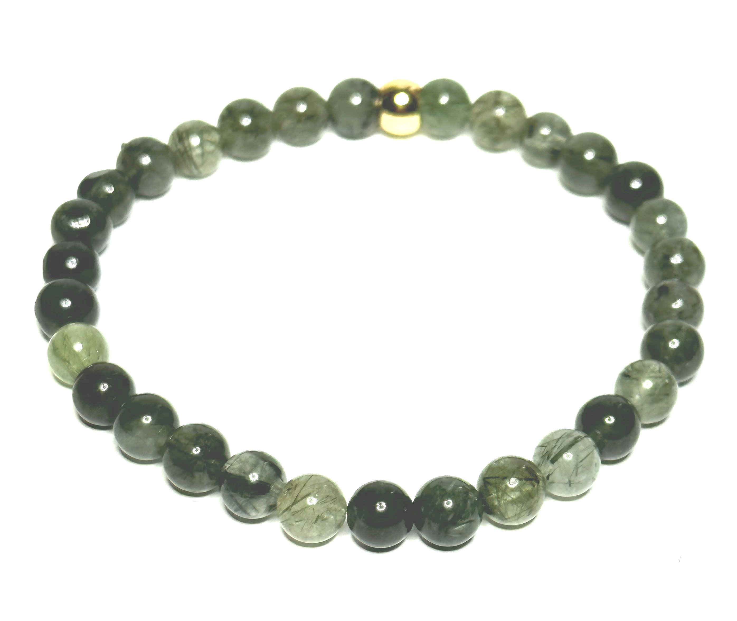 Křišťál s aktinolitem náramek elastický přírodní kámen, kulička 6 mm / 16 - 17 cm, zlatý korálek, kámen kamenů