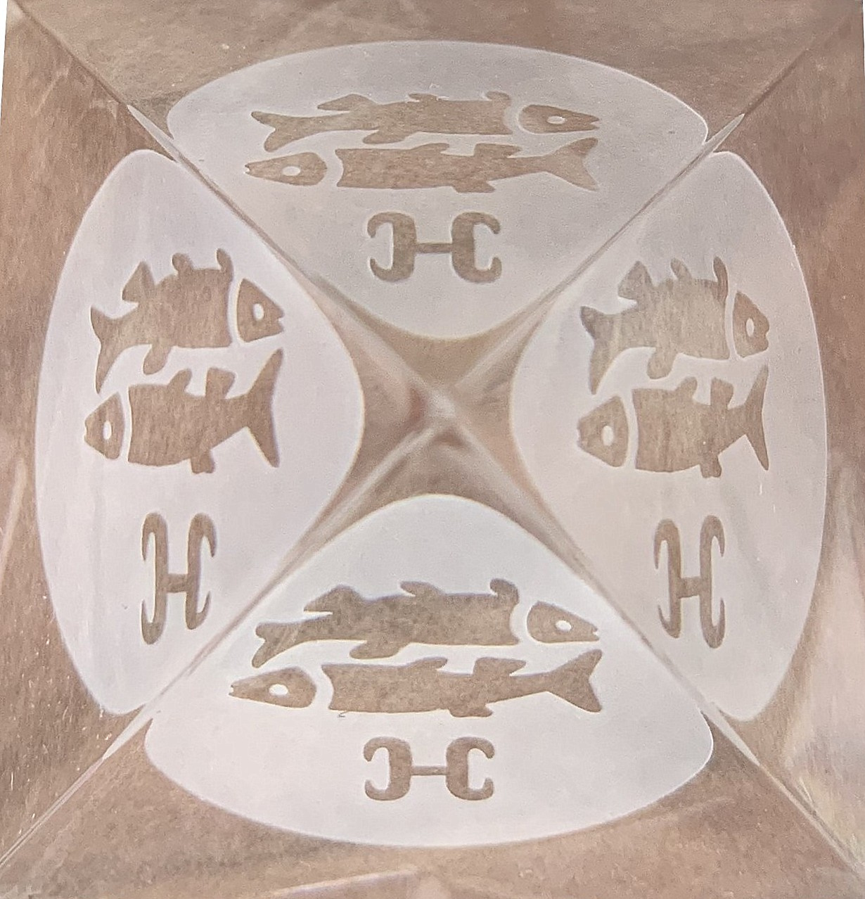 Pyramida je vyrobena z českého skla. Čtyři šikmé stěny jsou lisované s ohněm leštěným povrchem, spodní rovinná plocha je mechanicky broušená a leštěná.