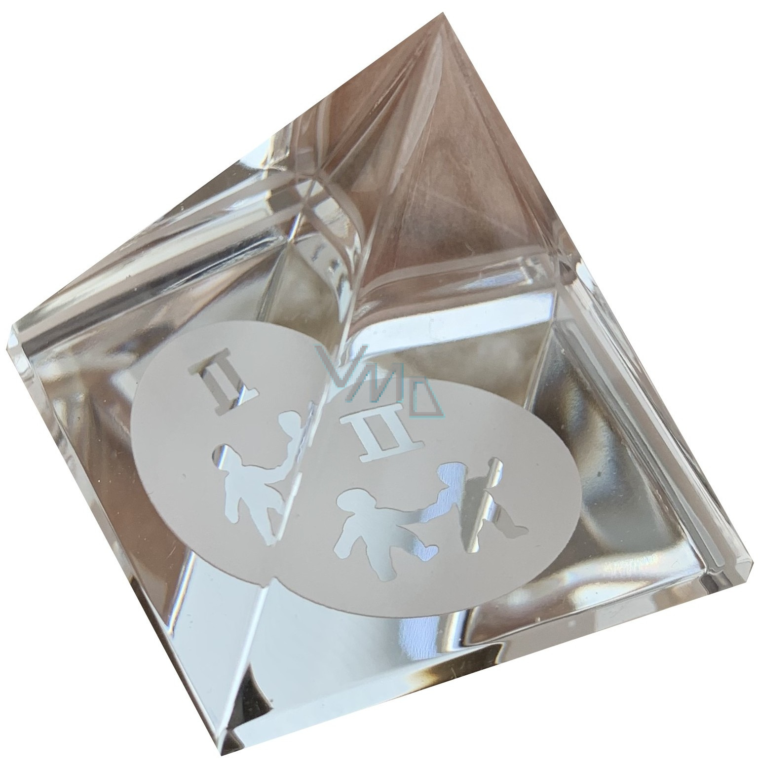 Křišťálové sklo Pyramida čirá s měsíčním znamením Blíženci