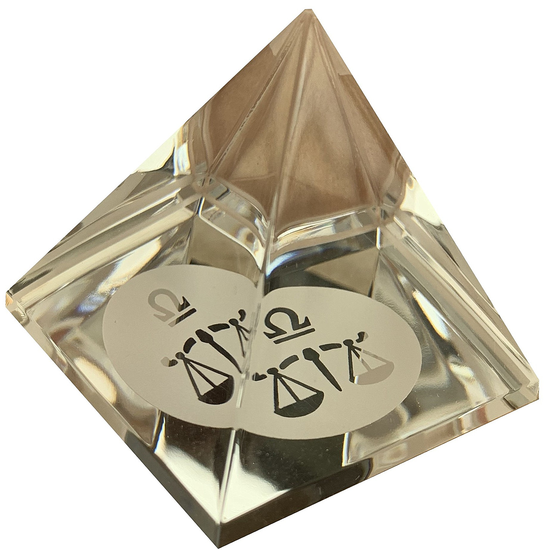 Pyramida je vyrobena z českého skla. Čtyři šikmé stěny jsou lisované s ohněm leštěným povrchem, spodní rovinná plocha je mechanicky broušená a leštěná.