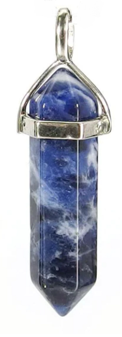 Sodalit kyvadlo šestihran přívěsek přírodní kámen 41 x 13 mm, kámen komunikace