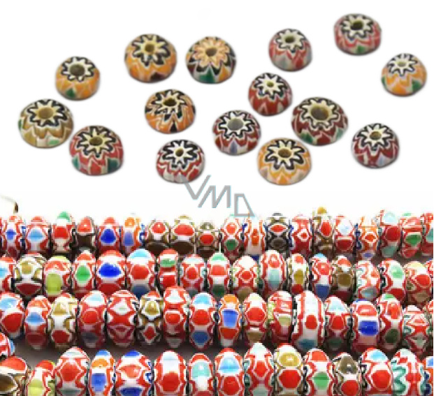 Starověké sklo ručně vyráběné z Nepálu z abakusových korálků s průměrem cca 8 mm s velkým květem. Vytvořte si svůj vlastní náhrdelník nebo náramek.