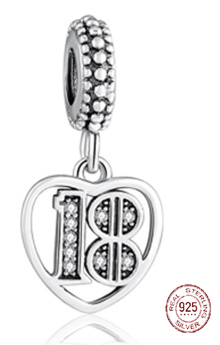 Charm Sterlingové stříbro 925 18 let lásky, přívěsek srdce na náramek výročí