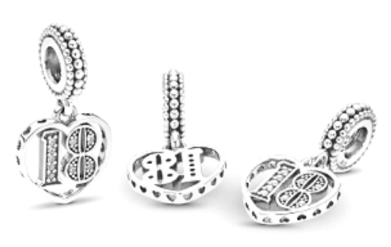 Přívěsek k dospívání je stvořen k oslavě 18. narozenin. Přívěsek je odlitý ze sterlingového stříbra, drží ve tvaru srdce, který je zdoben kamenem zdobeným číslem 18, orámovaným podél vnějšího okraje vyříznutými srdíčky. Perfektní dárek k přechodu do dospělosti, vypadá stejně skvěle jako na náramku nebo oblíbeném náhrdelníku.