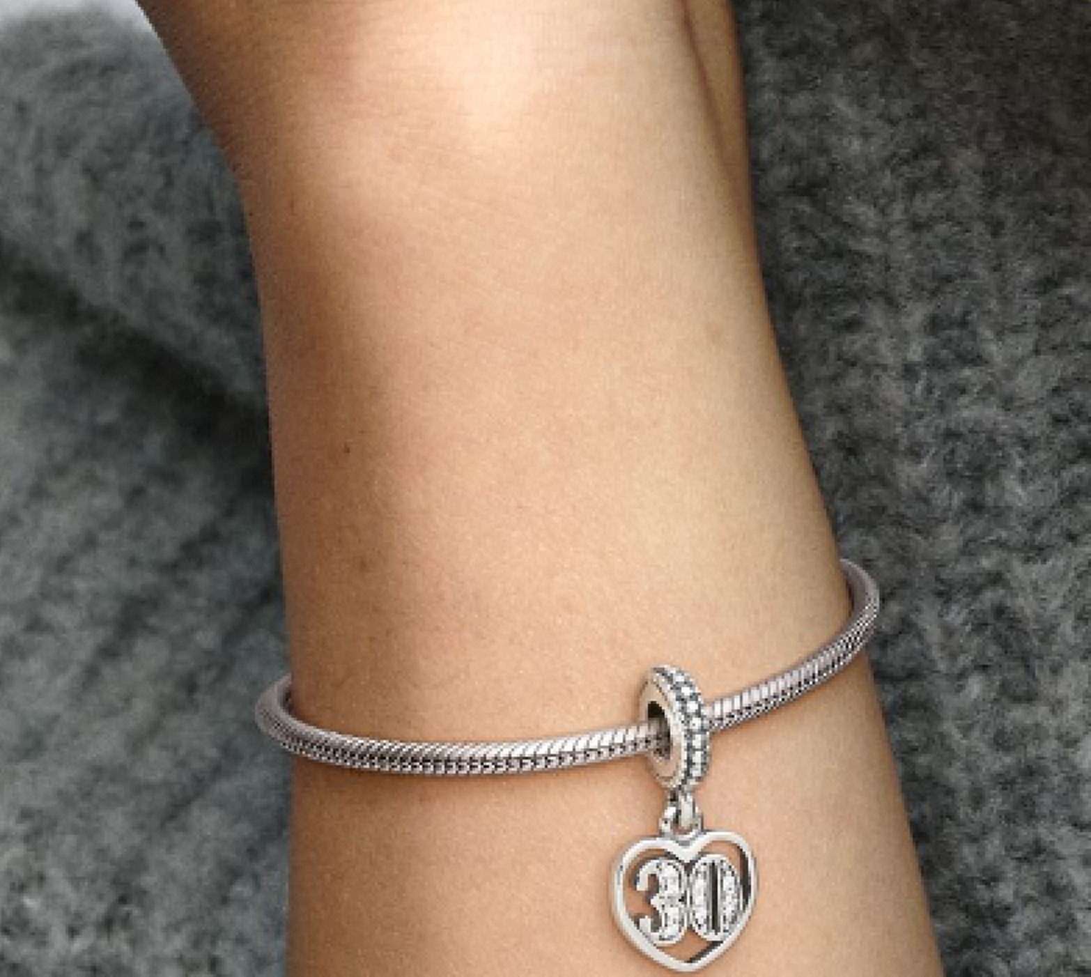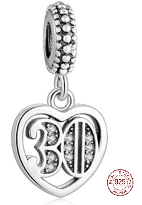 Charm Sterlingové stříbro 925 30 let lásky, přívěsek srdce na náramek výročí