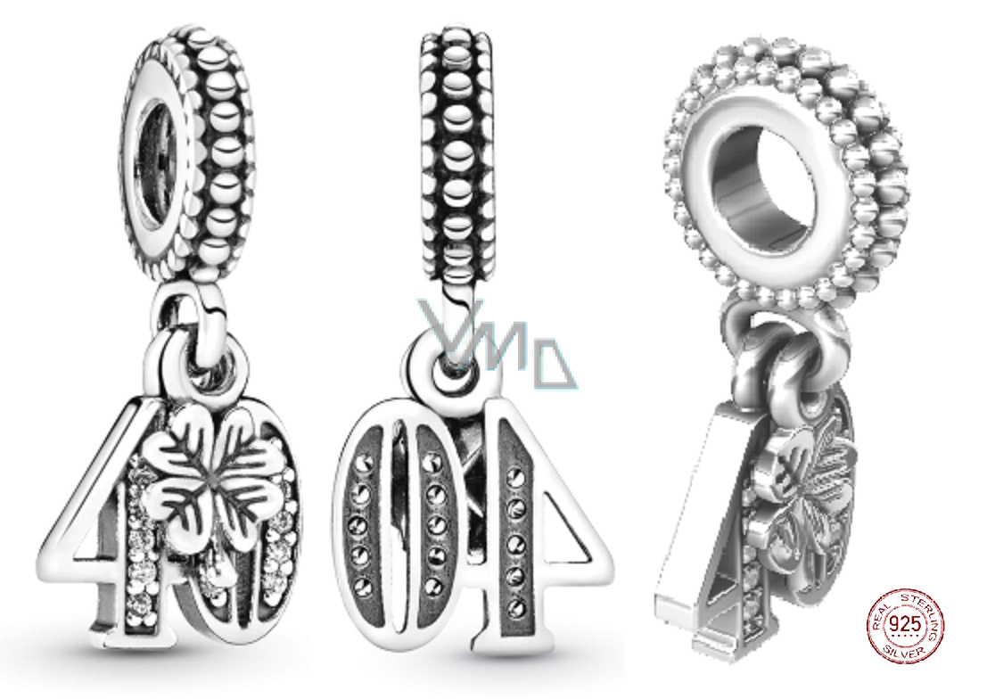 Tento přívěsek ze sterlingového stříbra pro náramky, vyrobený na oslavu 40. výročí nebo nezbedných čtyřiceti narozenin, je zvýrazněn kubickými Zirkony a korálkovými detaily. Je zakončen miniaturním čtyřlístkovým přívěskem, který přináší štěstí osobě, která jej nosí.