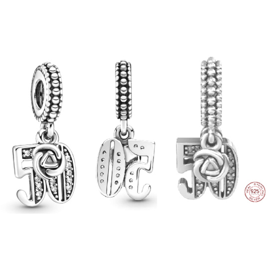 Charm Sterlingové stříbro 925 50 let lásky, 2v1 přívěsek na náramek výročí