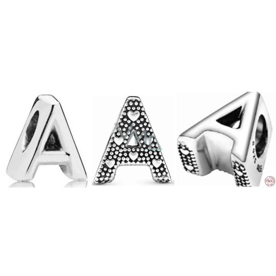 Charm Sterlingové stříbro 925 Abecední písmeno A, korálek na náramek