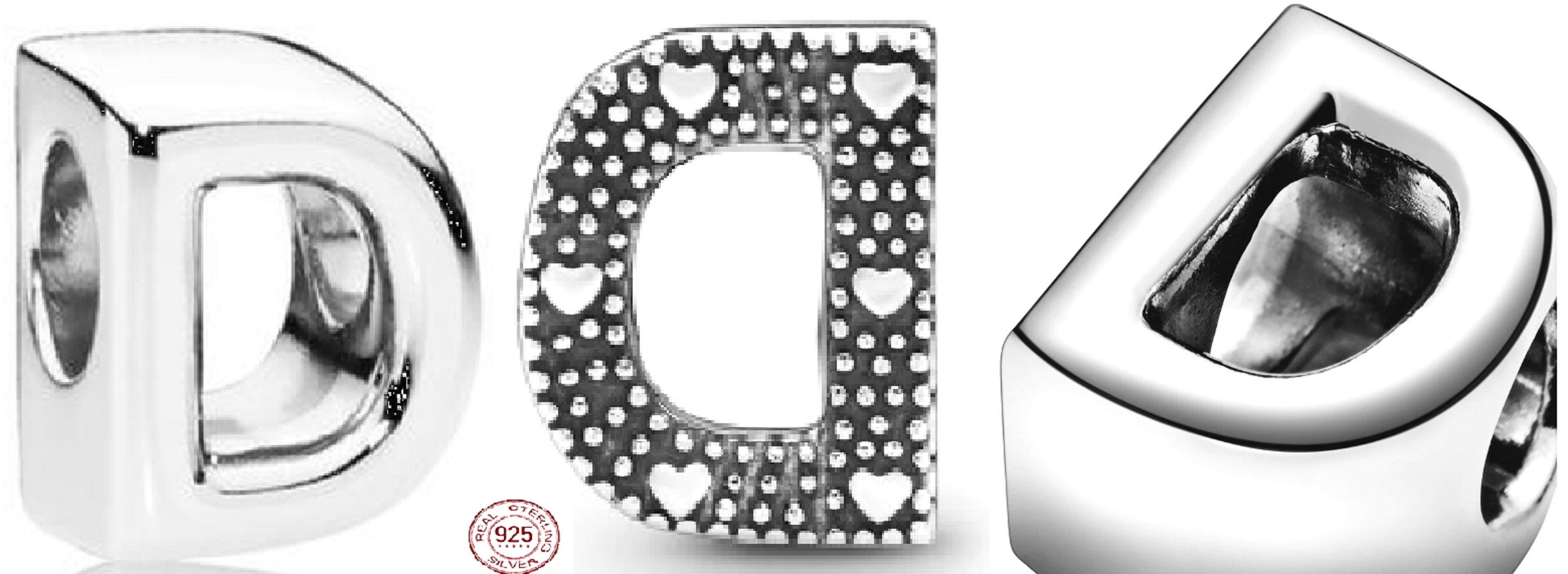 Charm Sterlingové stříbro 925 Abecední písmeno D, korálek na náramek