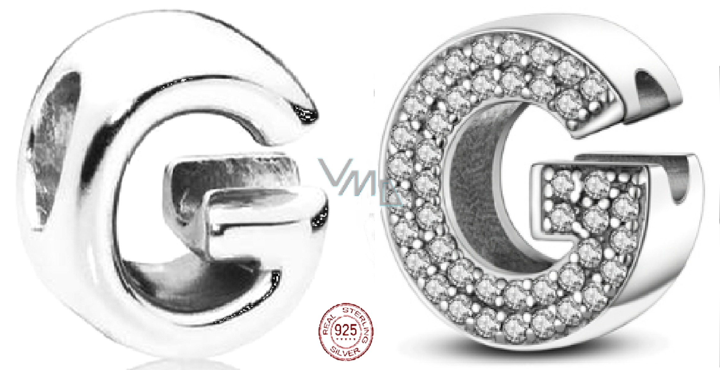 Charm Sterlingové stříbro 925 Abecední písmeno G, korálek na náramek