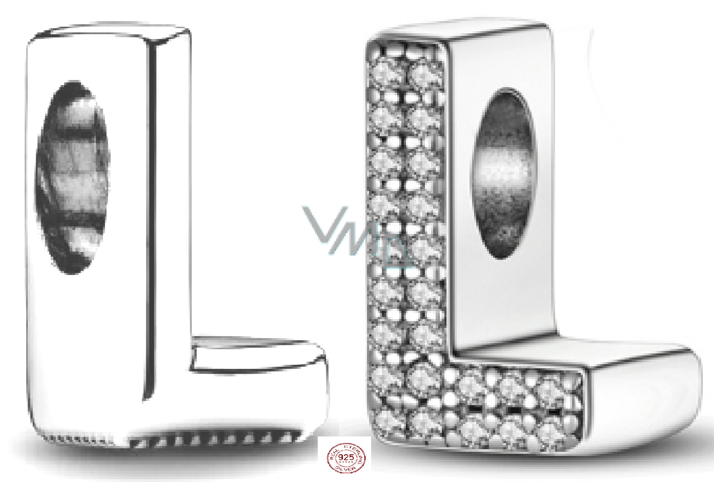 Charm Sterlingové stříbro 925 Abecední písmeno L, korálek na náramek