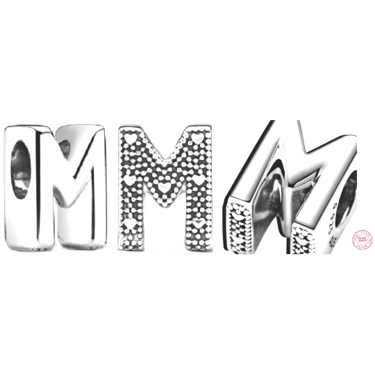 Charm Sterlingové stříbro 925 Abecední písmeno M, korálek na náramek